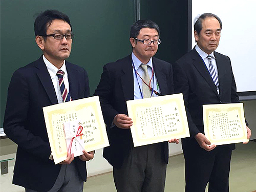 日本大学藤沢キャンパスにて開催されました平成28年度学術講演会におきまして,平成27年度水産工学論文賞の授賞式が行われました。おめでとうございます。 受賞者(所属)と業績題目は,次の通りです。 水産工学論文賞 受賞者氏名 伊藤 靖(*1),不動 雅之(*2),田中 浩生(*3),綿貫 啓(*1) 受賞業績題目 「震災で発生したコンクリートがらの漁場施設への適用性に関する研究」 (写真左から)伊藤 靖氏,田中 浩生氏,綿貫 啓氏 業績内容は,会誌「水産工学」第50巻第3号に掲載されています。 カテゴリ:日本水産工学会の行事 |